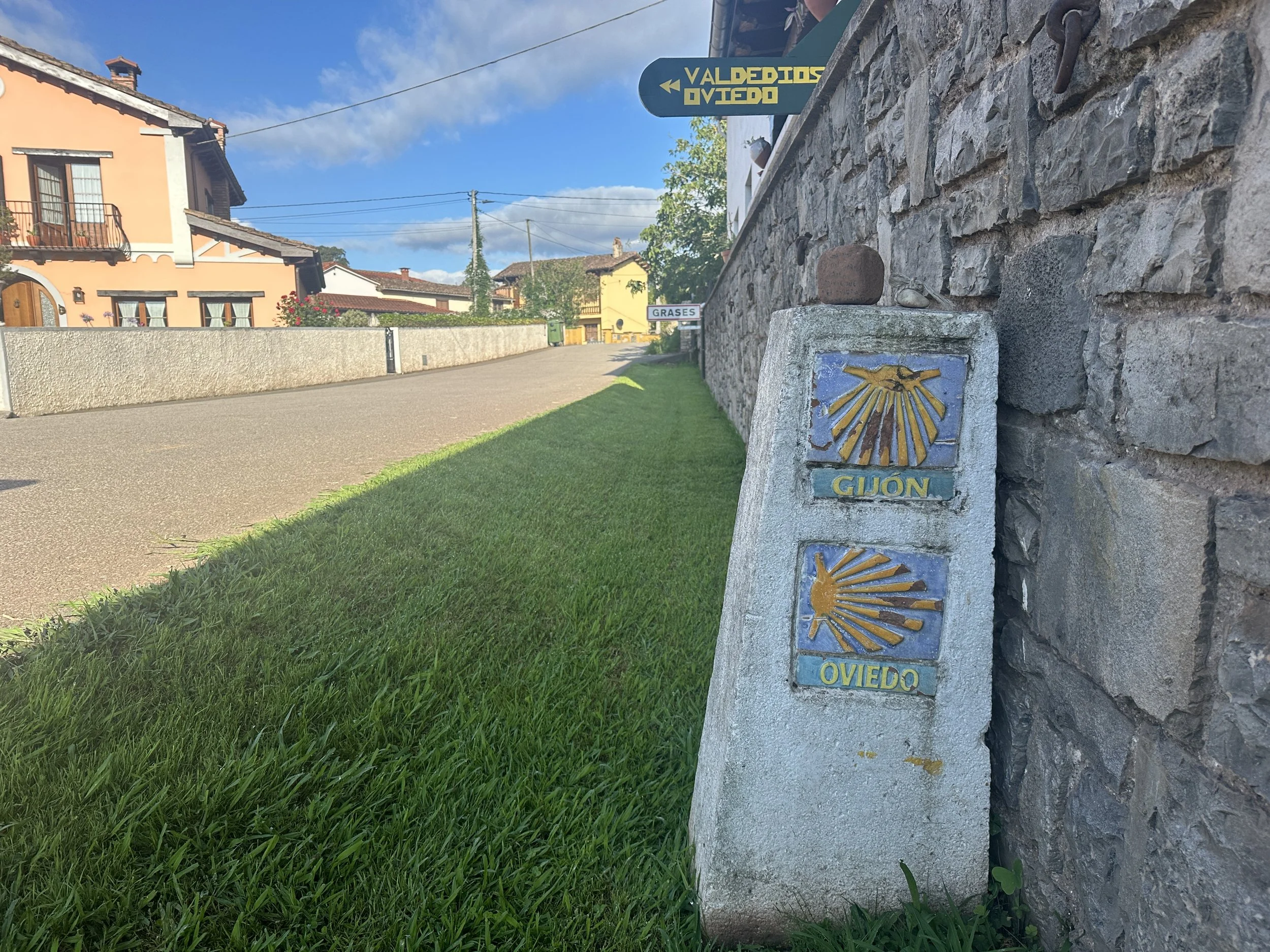 This was the point on the Camino del Norte where you could choose to continue to Santiago de Compostela via the northern coastal route (i.e. stay on the Camino del Norte), heading on to Gijón, or split southward toward the city of Oviedo. From Oviedo, you could either continue southwest along the Camino Primitivo or return northward, rejoining the Camino del Norte route in the city of Avilés. Sticking to the Camino del Norte through Gijón, it was a two day walk to Avilés. Taking the detour through Oviedo to Avilés added an extra day.