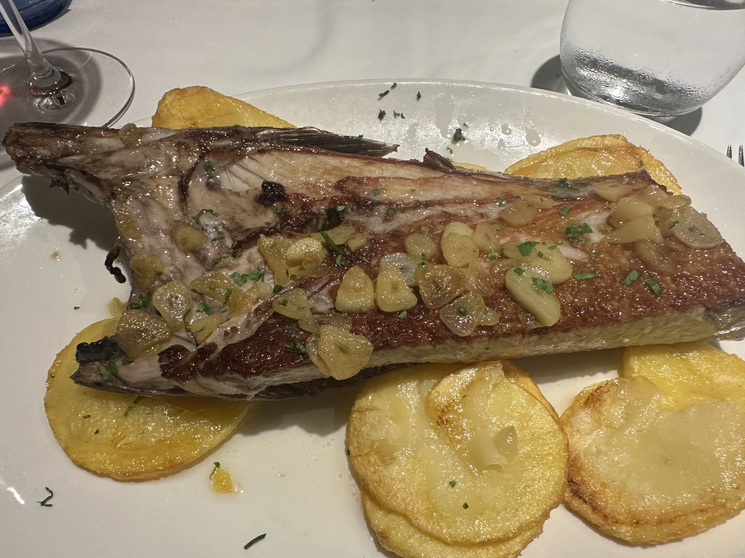 For dinner, we treated ourselves to a nice restaurant that our hotel owner had suggested, getting the delicious tuna belly. A dish that, upon arriving, we realized we could have split – particularly after having a couple of tasty appetizers, including a plate of amazing Manchego cheese, which comes from the La Mancha area of Spain. (Yes, the same La Mancha popularized through Don Quixote... “I AM DON QUIXOTE, THE MAN OF LA MANCHA”). While Don Quixote is a fictional character, La Mancha is very much a real place and their cheese is very good.