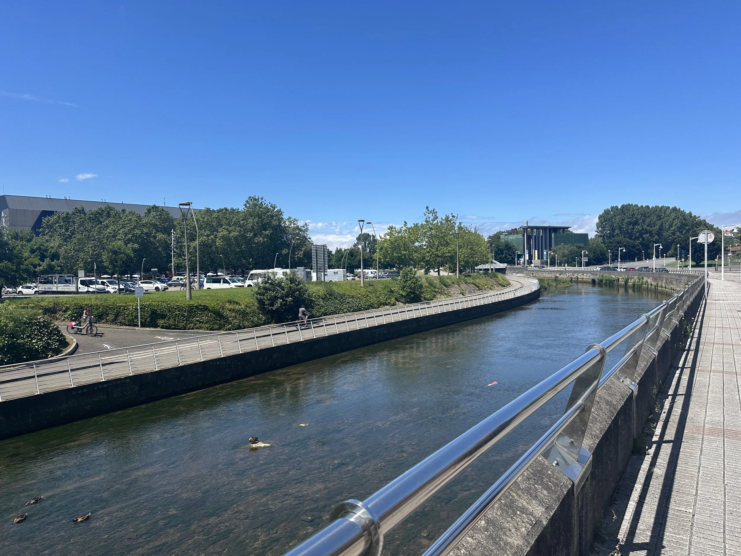 From the restaurant, we only had about five miles to go. The vast majority of this was actually through the suburbs of Gijón, slowly winding our way toward the center of the city. For the last stretch, we took a short alternate that led us along the Rio Piles and out to the coast, which we were all happy to see again.