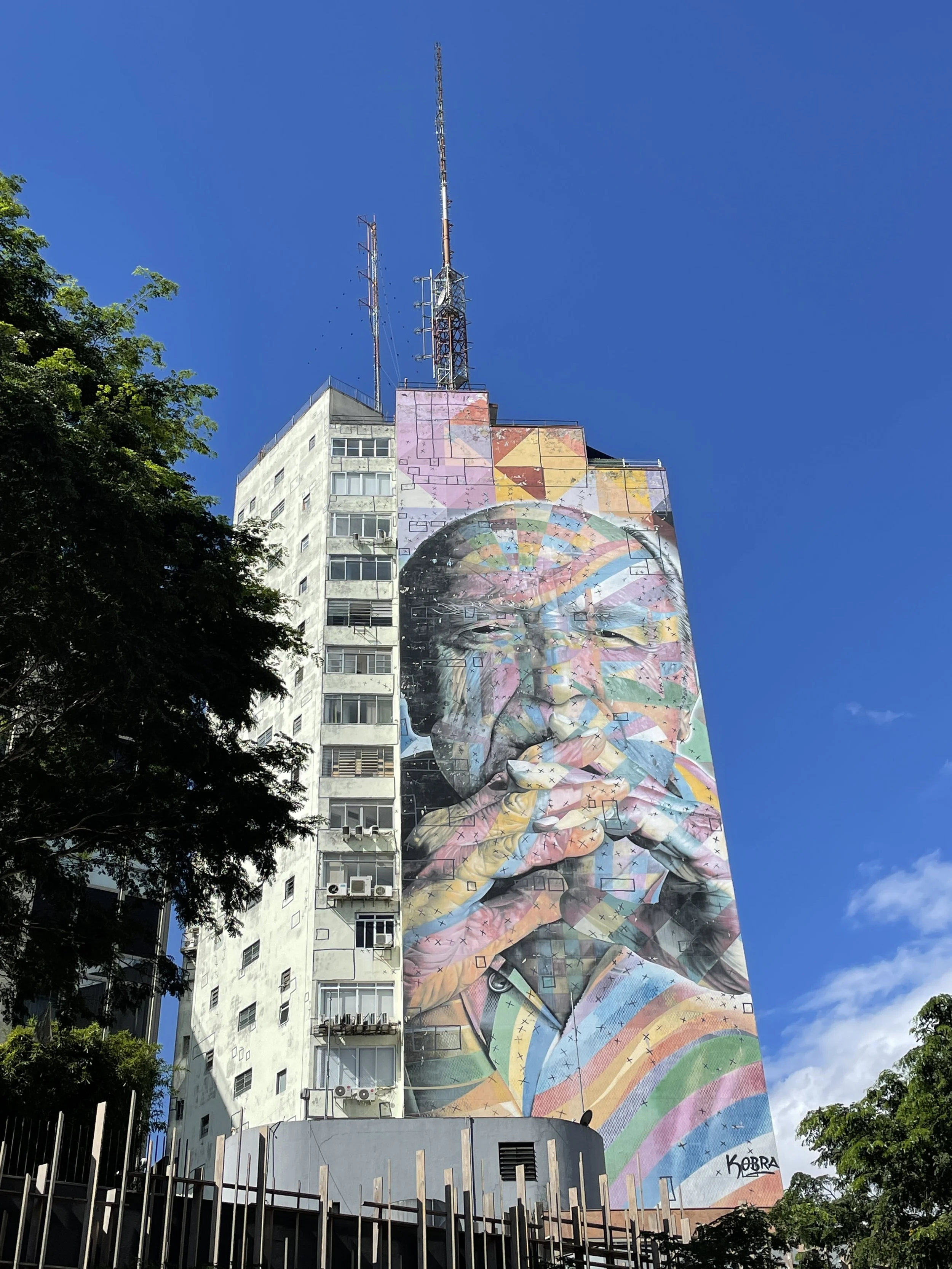 After lunch, Shawn went back to the hotel to catch up with the Tour de France coverage, while I did a bit more strolling and exploring. First up was the Oscar Niemeyer Center. Oscar Niemeyer is a Brazilian architect who we were very familiar with from our travels in Brazil. In addition to seeing/visiting a number of buildings/museums that were designed by him, Kobra – one of our favorite street artists – had painted a giant mural of Niemeyer along the side of a tower on Paulista Avenue in São Paulo. He is a bit of a big deal in Brazil, and in the architectural world in general.