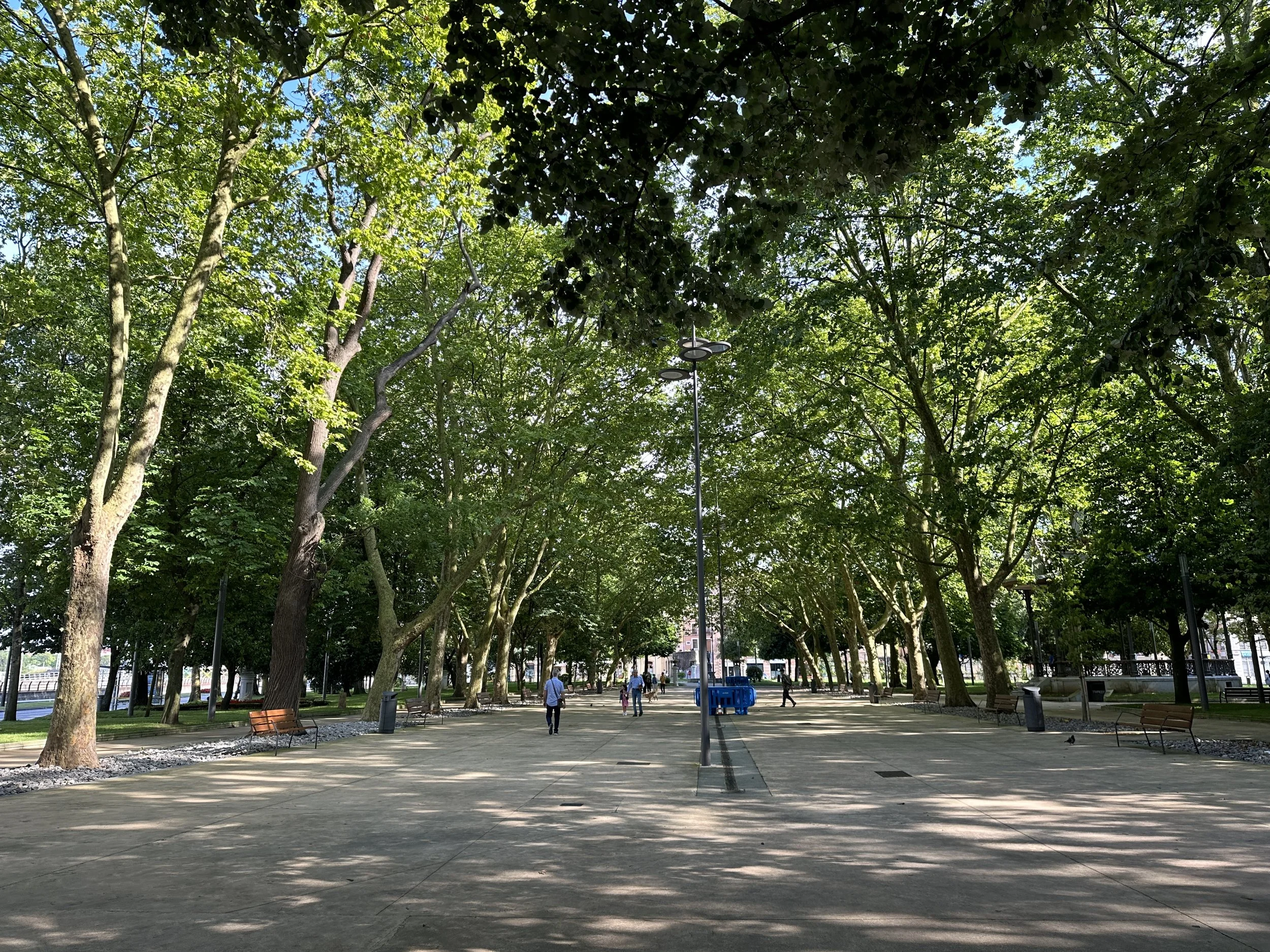 Along the promenade on the west side of the river, there were a series of historic photos of the riverfront port area where I now walked. The boats currently moored looked very different than those in the photo. The photos were an interesting look into the past and a fun addition to the waterfront.