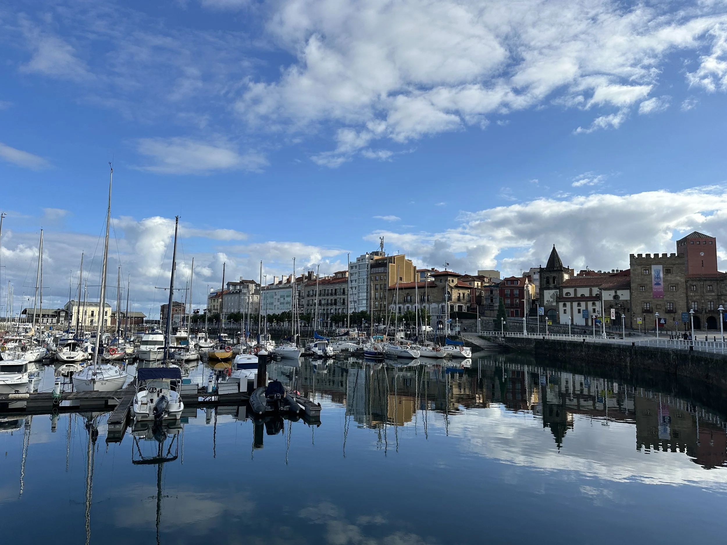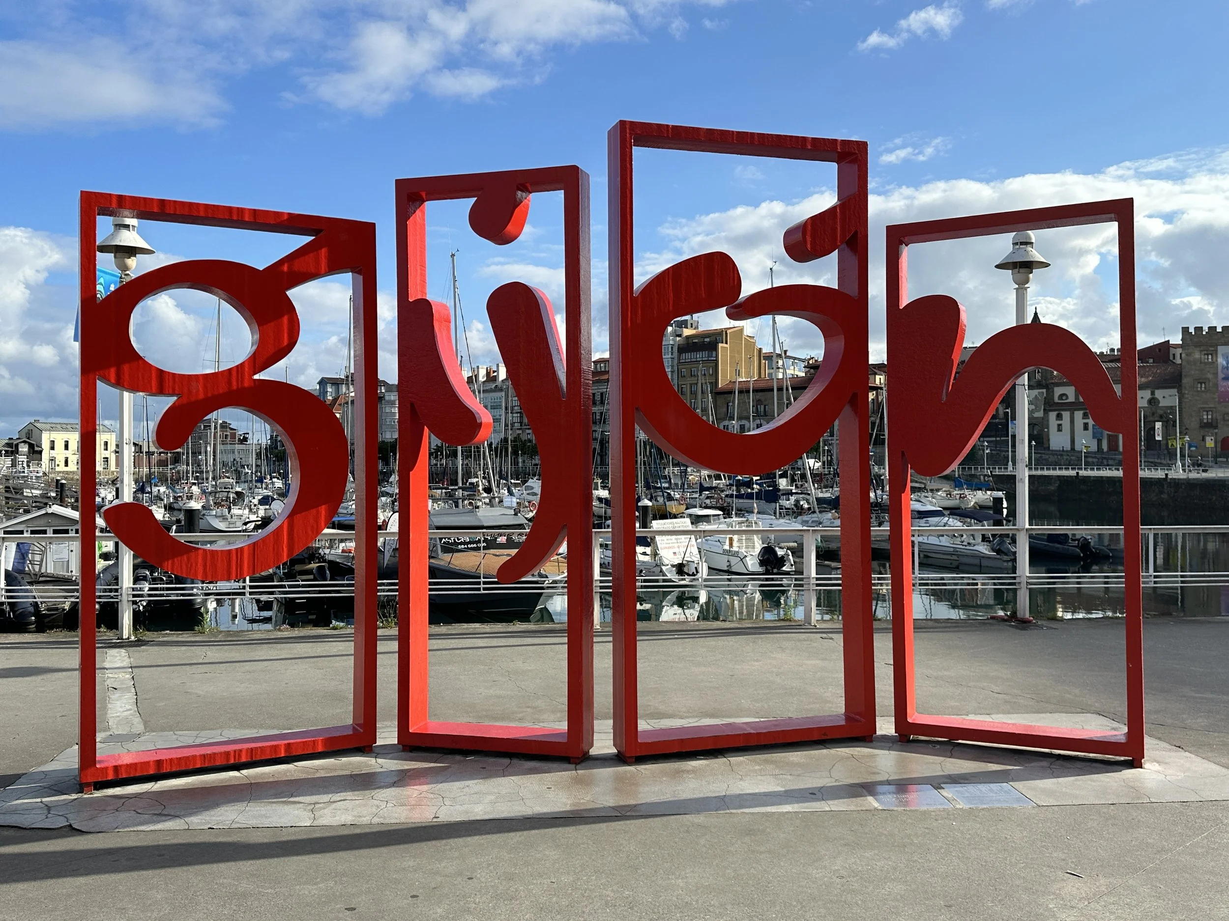 Today we woke to a beautiful morning. After finding a bite to eat at a cafe in Gijón, we set out under blue skies. Walking along the marina, the sun lent an entirely new atmosphere to the city than the dreary gloom we’d experienced yesterday. Bright and cheery. Many were out walking, running, and bicycling along the promenade and pedestrian paths that ran along Gijón’s waterfront.