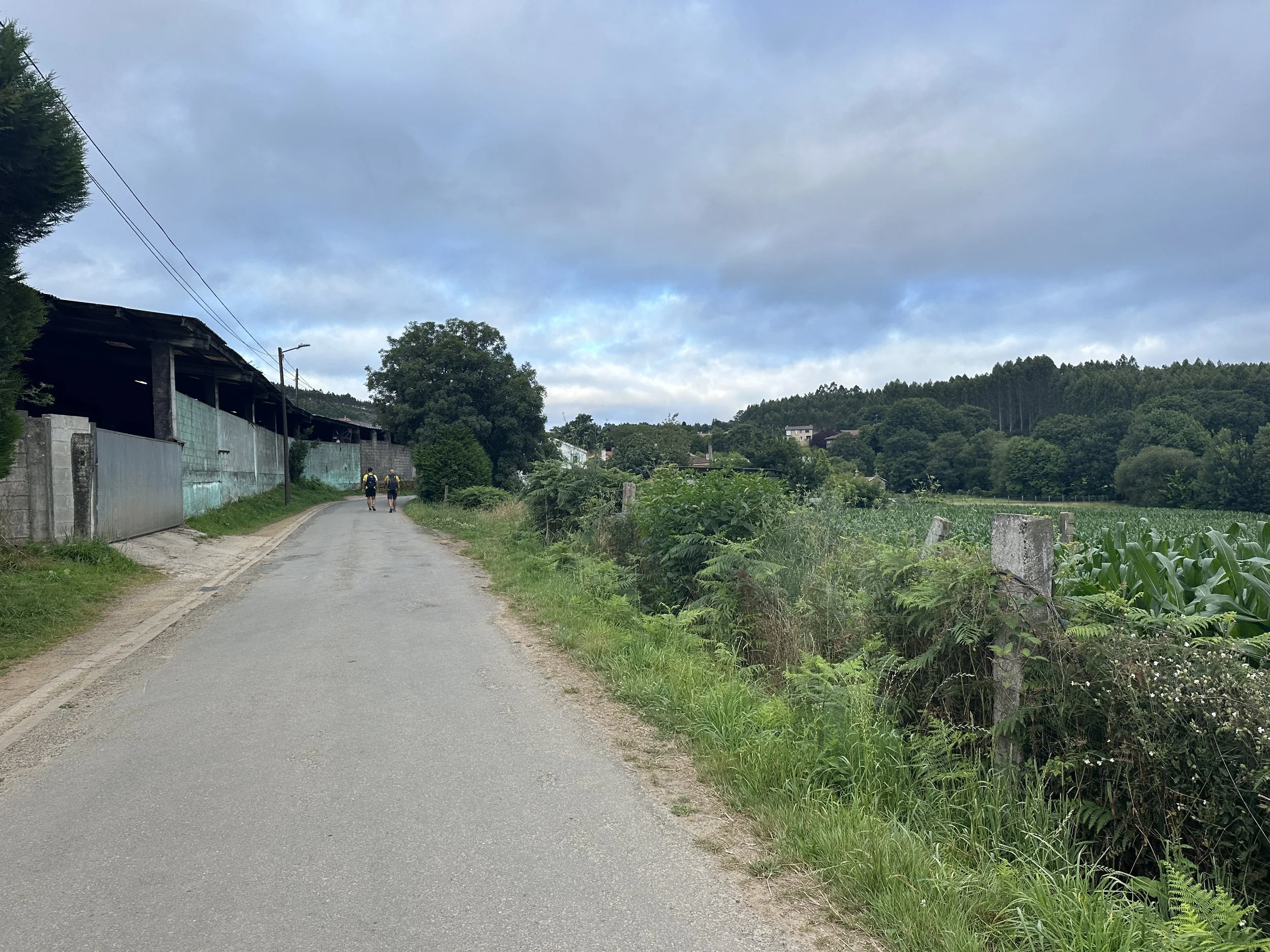 Both of us had muscles/tendons that were quite sore at this point, the sixth and last day of a stretch of mostly long mileage days to reach Santiago de Compostela on Saint James Day, a goal that had shortened our original timeframe when setting out from Ribadeo by two days. To make matters worse, the day wasn’t exactly an easy stroll. While there were no major climbs, there were plenty of shorter hills, sometimes fairly steep, which were putting a lot of pressure on my aching shins. I needed new shoes, stat.