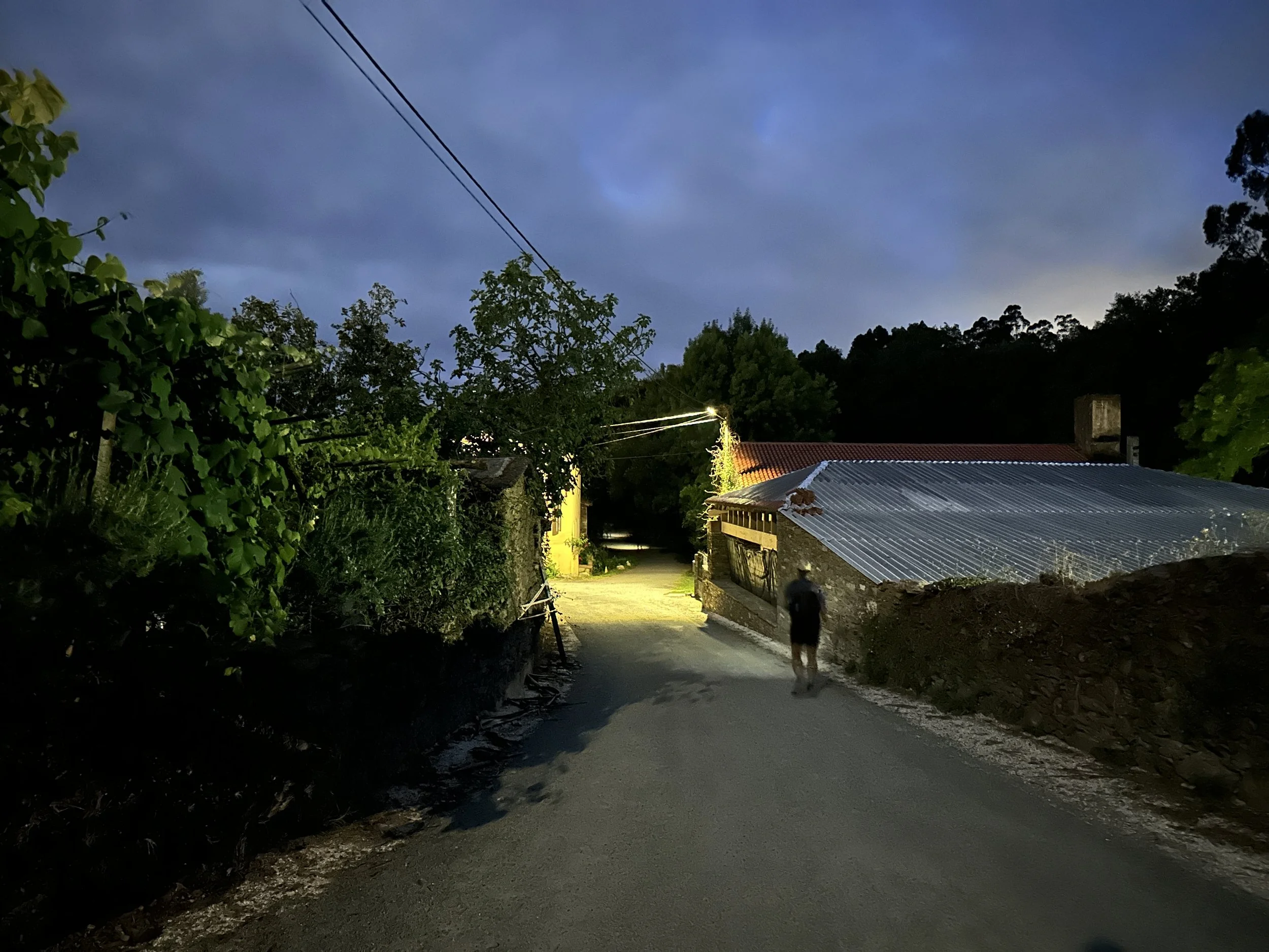 For now, we were up and walking down the road by 6:20am. Still dark, the road lights illuminated bits of the route until we hit the trail. Dark under the cover of trees, I dug out my headlamp for the first time on this journey. I’d originally brought it along just in case I needed a light while in the albergues, though never expected to do any hiking in the dark. Albergues, obviously, ended up being a very small part of our story out here.