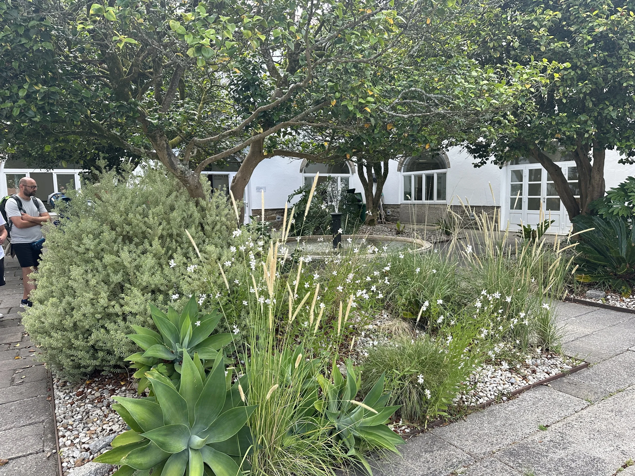While pilgrims were shuffled through the lines in the Pilgrim Center very quickly, out back there was a nice patio and garden where you could sit and relax, collect yourself, and roll up your papers for placement into the little green tubes we’d now see everyone carrying around.