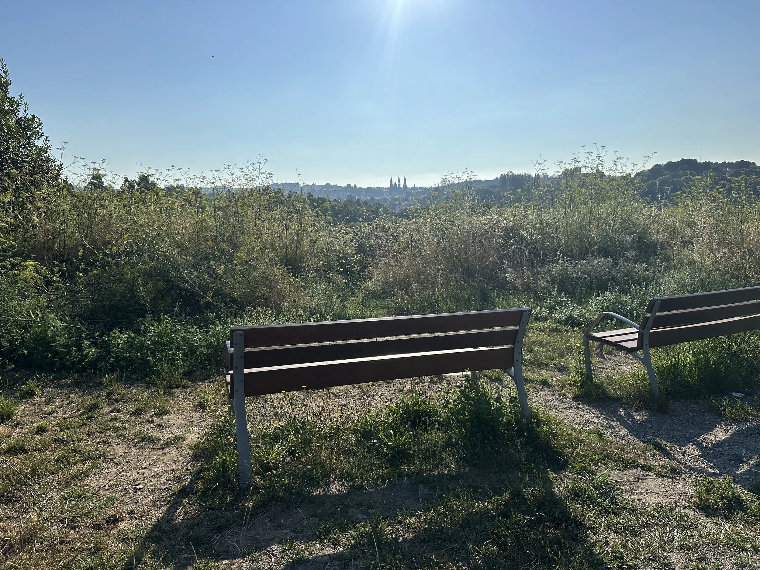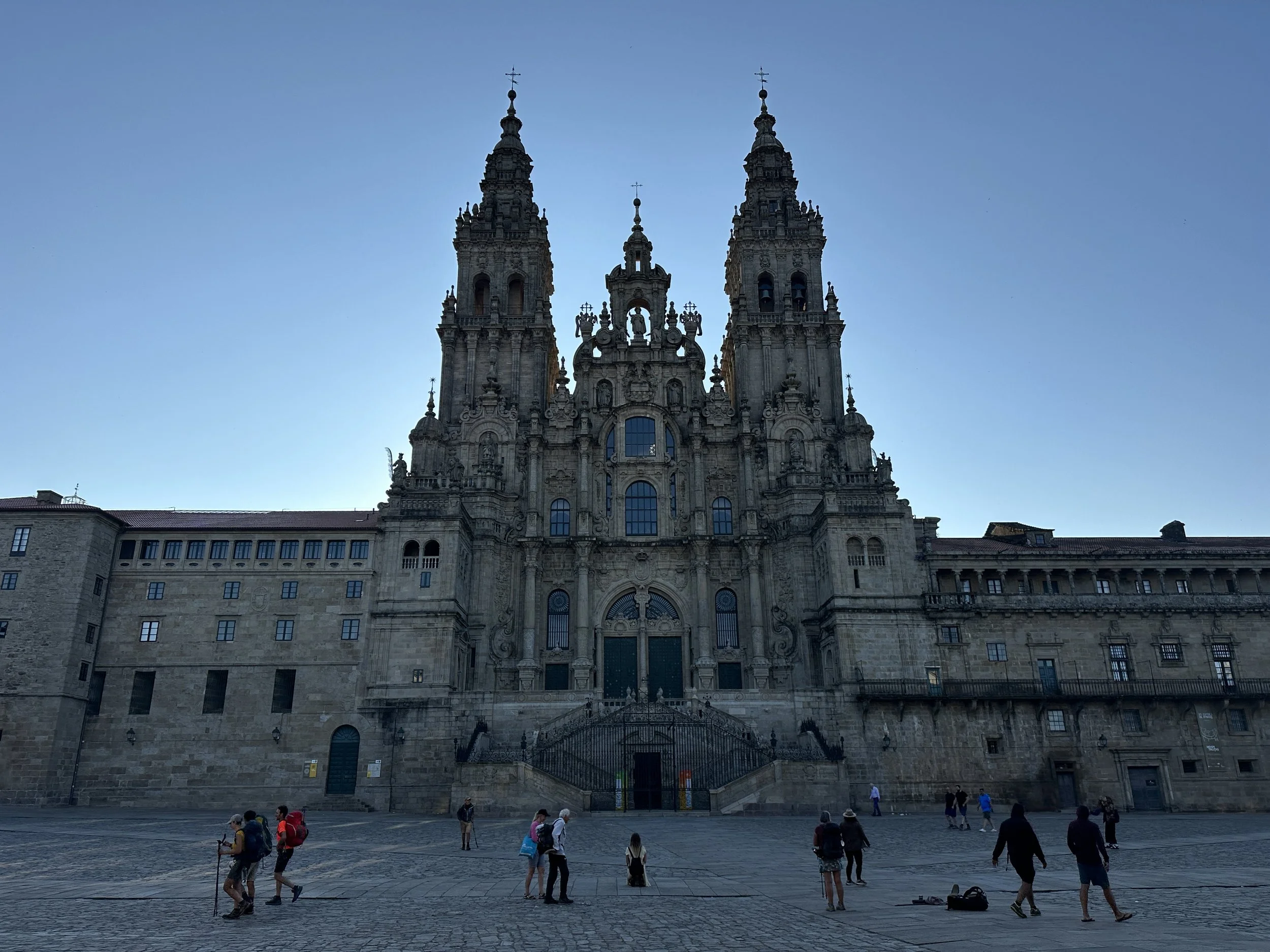 Last view of the Catedral de Santiago de Compostela in the distance.