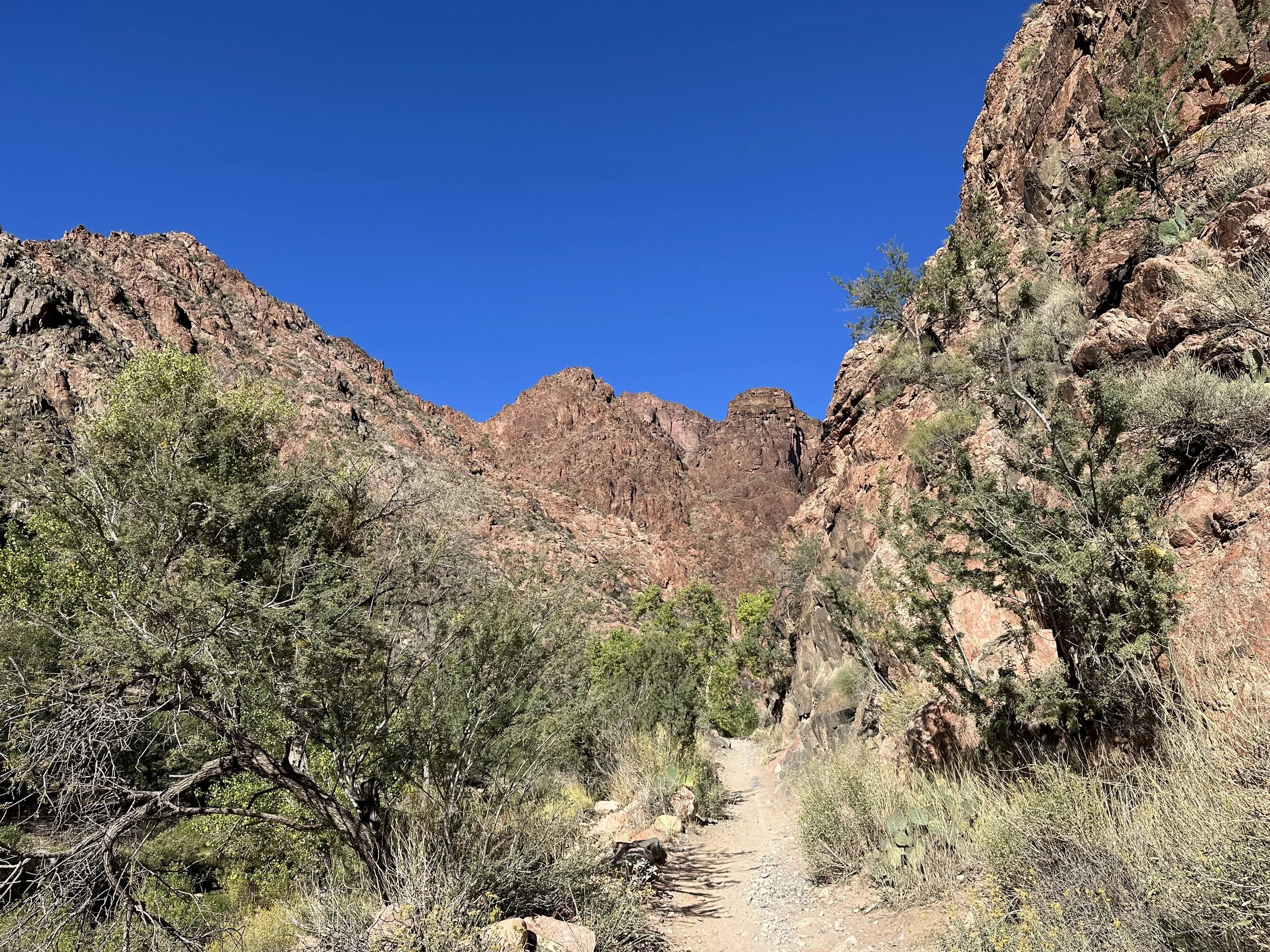 After several miles, the canyon opened up more, the river now running through a wide valley as the trail began to gently climb through the desert landscape.