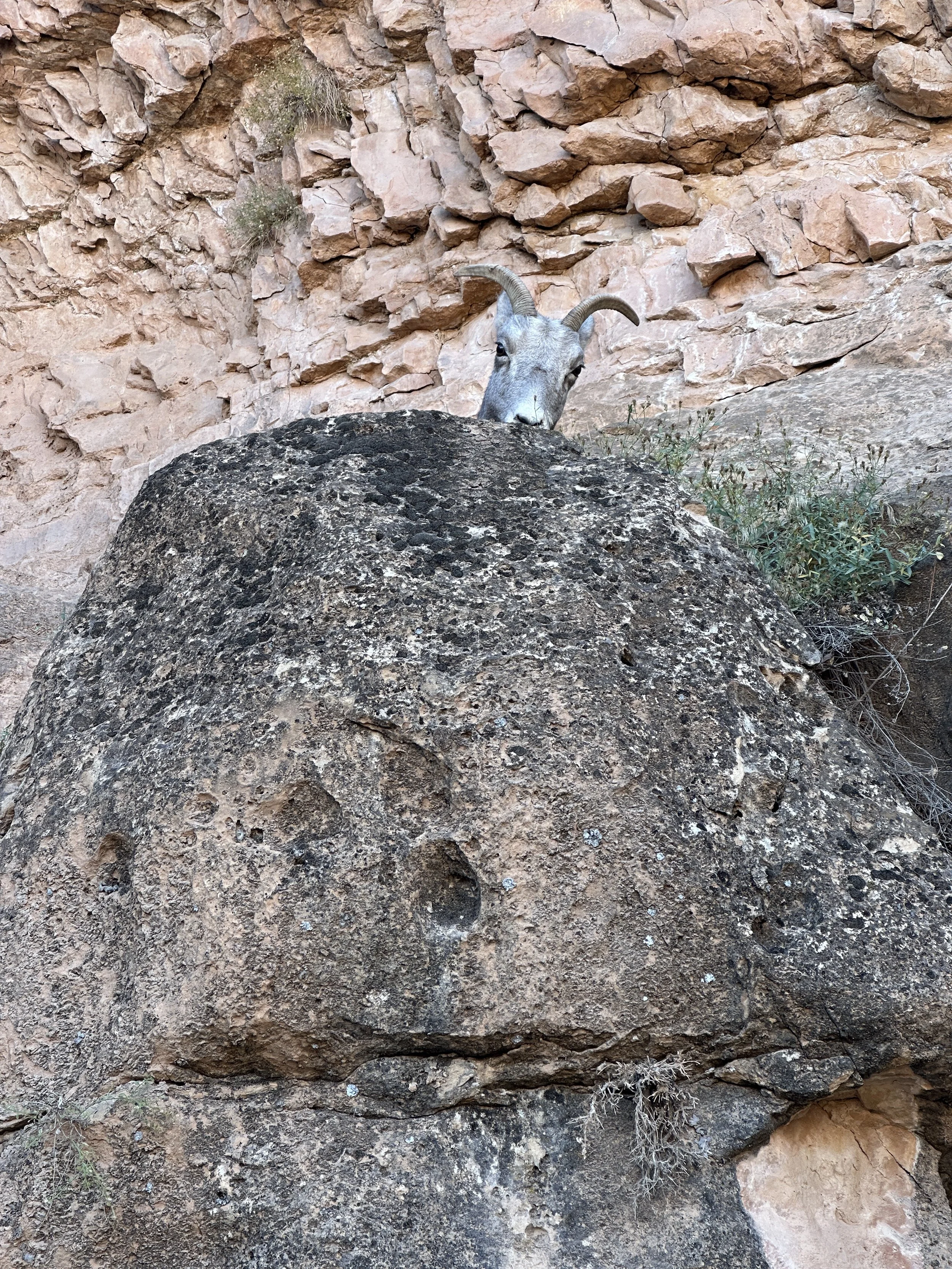 The last half mile or so brought a couple of nice rock archways as well as the appearance of a bighorn sheep, its head periscoping hilariously over a rock along the canyon wall. Shawn waited at the top as I finished the final bit. While I’d been anxious to finish within the last two miles, as I neared the last quarter of a mile and could finally see the end of the trail, I was content to enjoy and take in my surroundings for the last little bit. At the top, I took one last look over the immense canyon and we snapped a finish pic. With that, our hike was over.