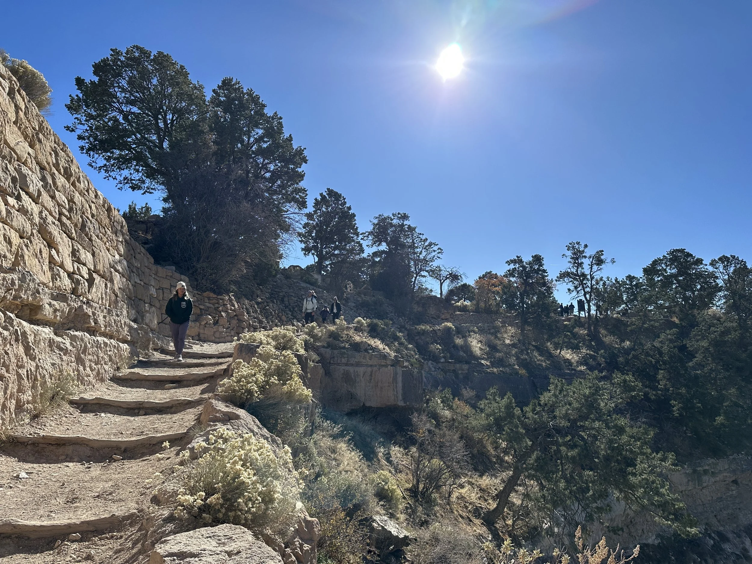 As the first miles passed, we slowly started seeing other hikers and runners. The first duo that came our way was a set of runners out to tackle the rim-to-rim-to-rim. We greeted the front runner with a good morning as we stood aside the trail to let him by. “Are you guys from Flag?” he asked.
