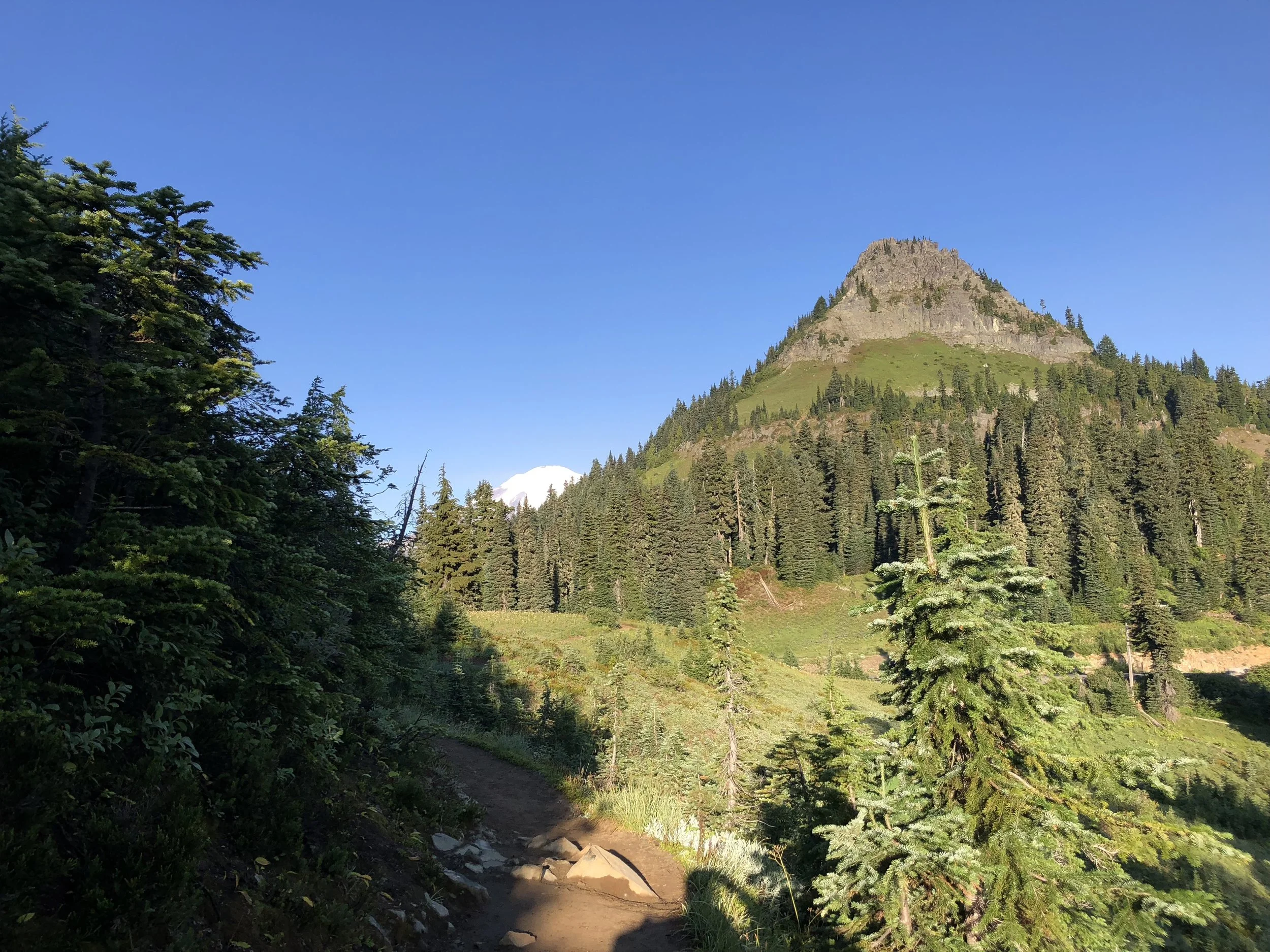 While other mountains had been obscuring good views of Rainier for most of the early morning, we eventually got some amazing views of her, and she remained in view off and on throughout our hike.