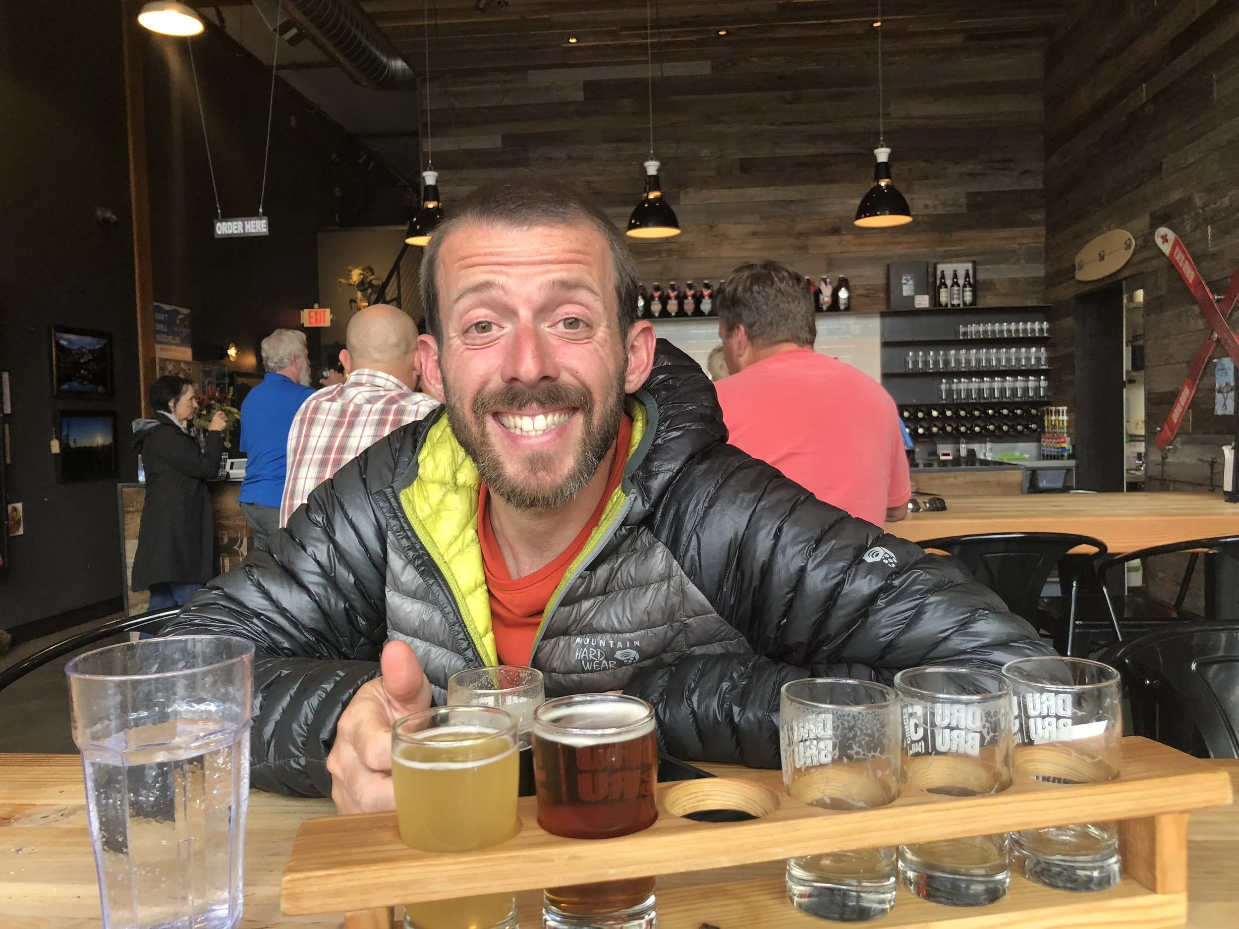 Shawn in his happy place with a beer flight.