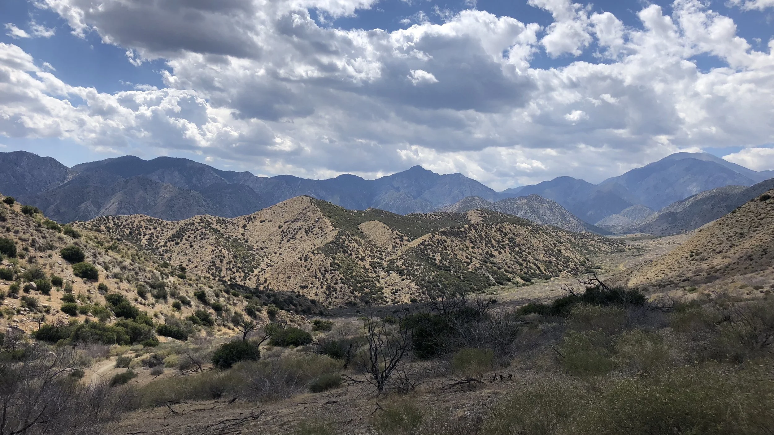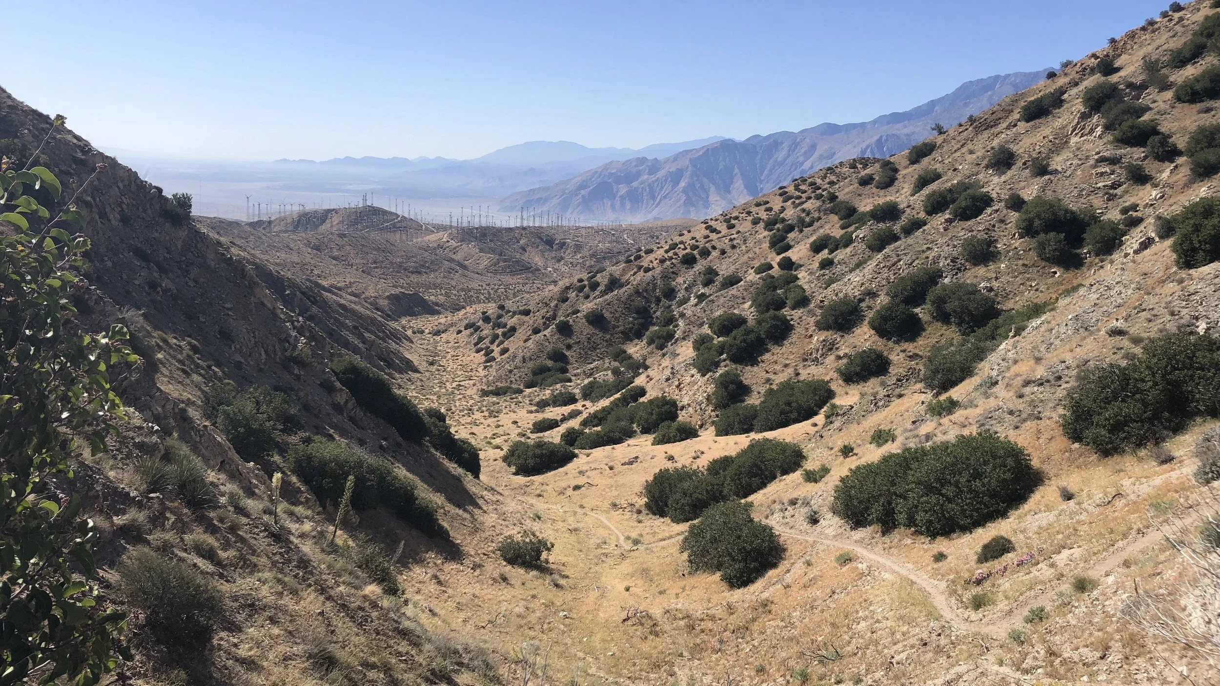 Passing the Mesa Wind Farm, we climbed up and over San Gorgonio Pass, the steepest of the climbs for the day. Over the pass, the trail descended a bit before following the mountainside with flat and gentle rolling grades.