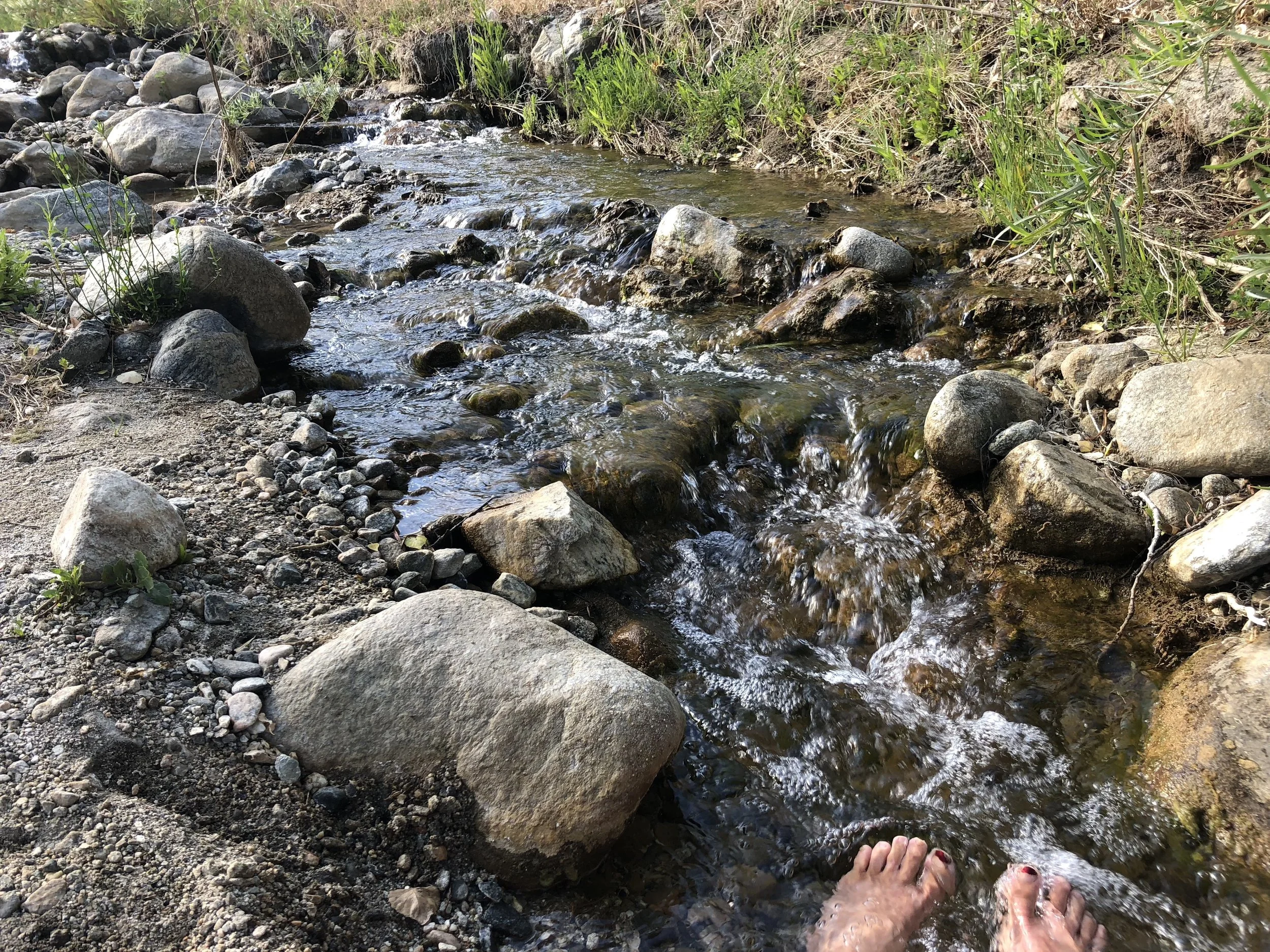 My toes and feet had been in at least some pain all day, but as the day and miles grew on, they were in A LOT of pain and I was very slow. Shawn had hiked ahead the last three miles. By the last mile and a half of the hike, I was in full hobble mode. Shawn eventually came back down the trail when I was about a quarter mile from our tent site for the night. He relieved me of my pack for this last bit and soon enough my shoes were off and I was stretching and soaking my feet in the cold creek. I did more yoga and stretching. Please stop hurting, feet. I need you.