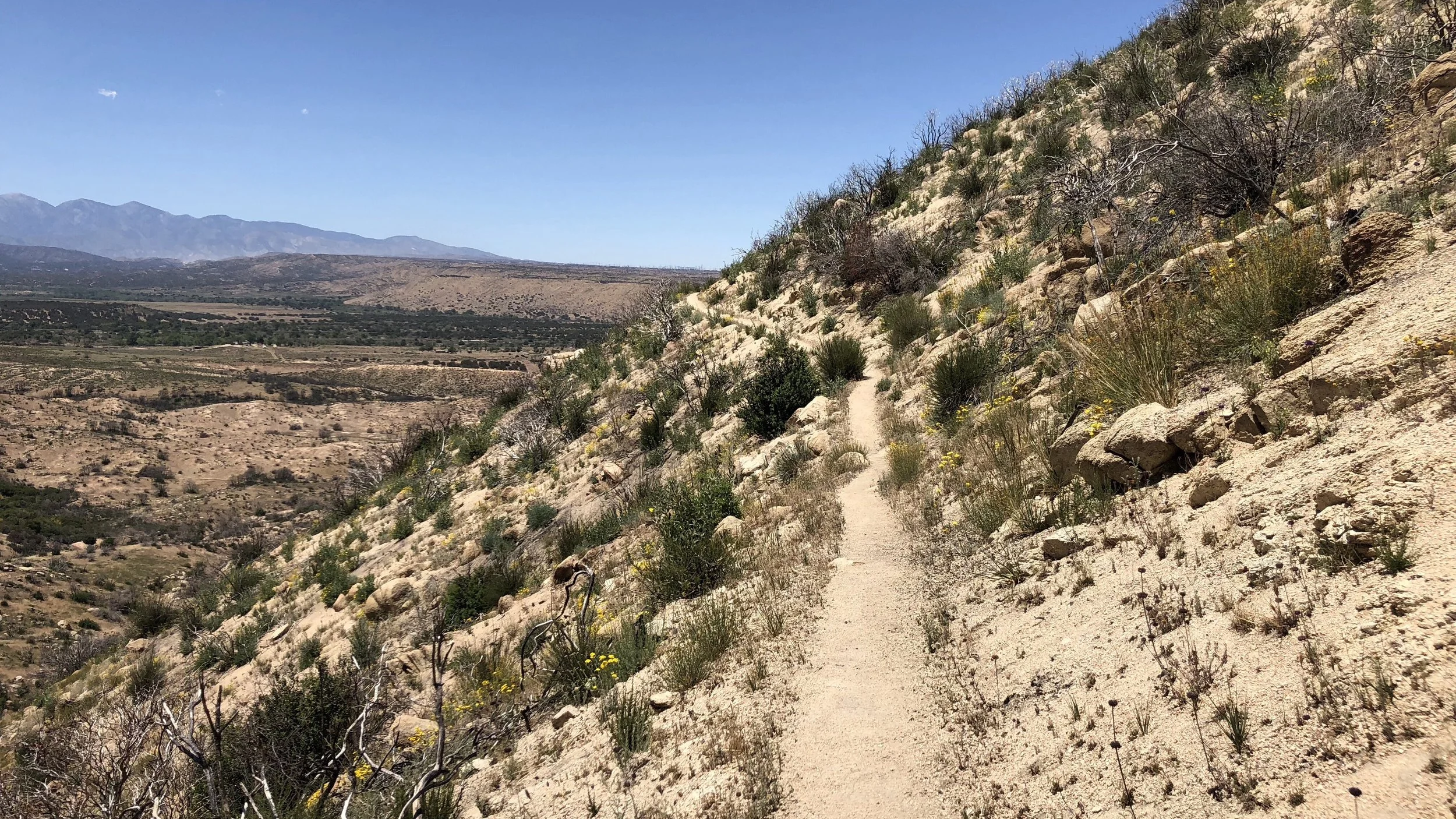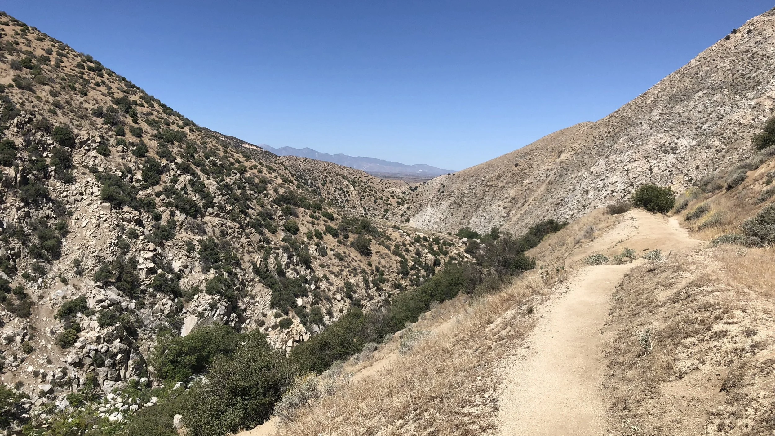 In addition to big heat, today was also a big snake day. I saw four different types of snakes on the trail, ranging from tiny to a thick one 3-4 feet long, and we also got a warning rattle from a rattlesnake hidden behind a bush. We gave the bush a very wide berth and hurried past. No pictures because snakes move fast.