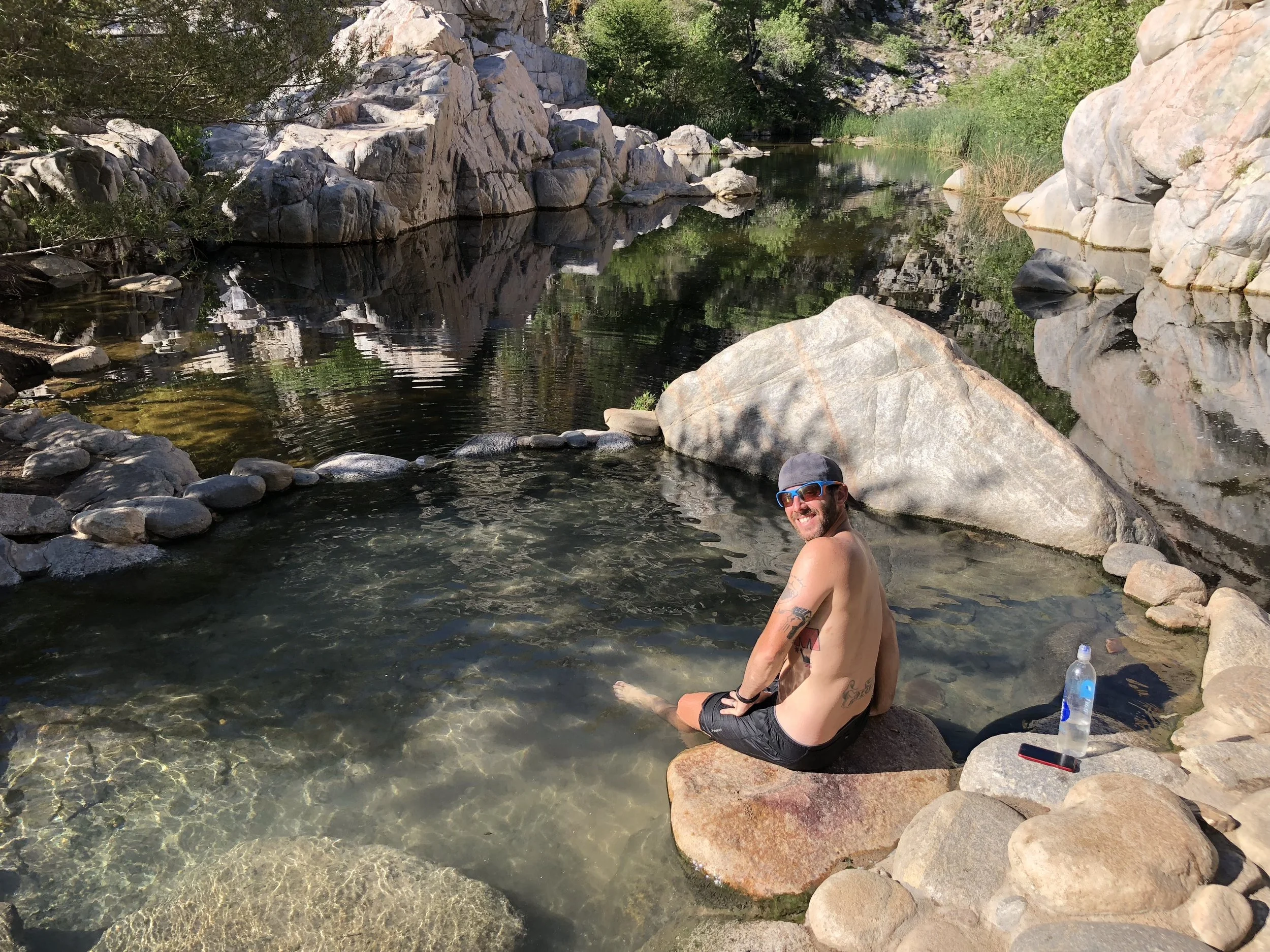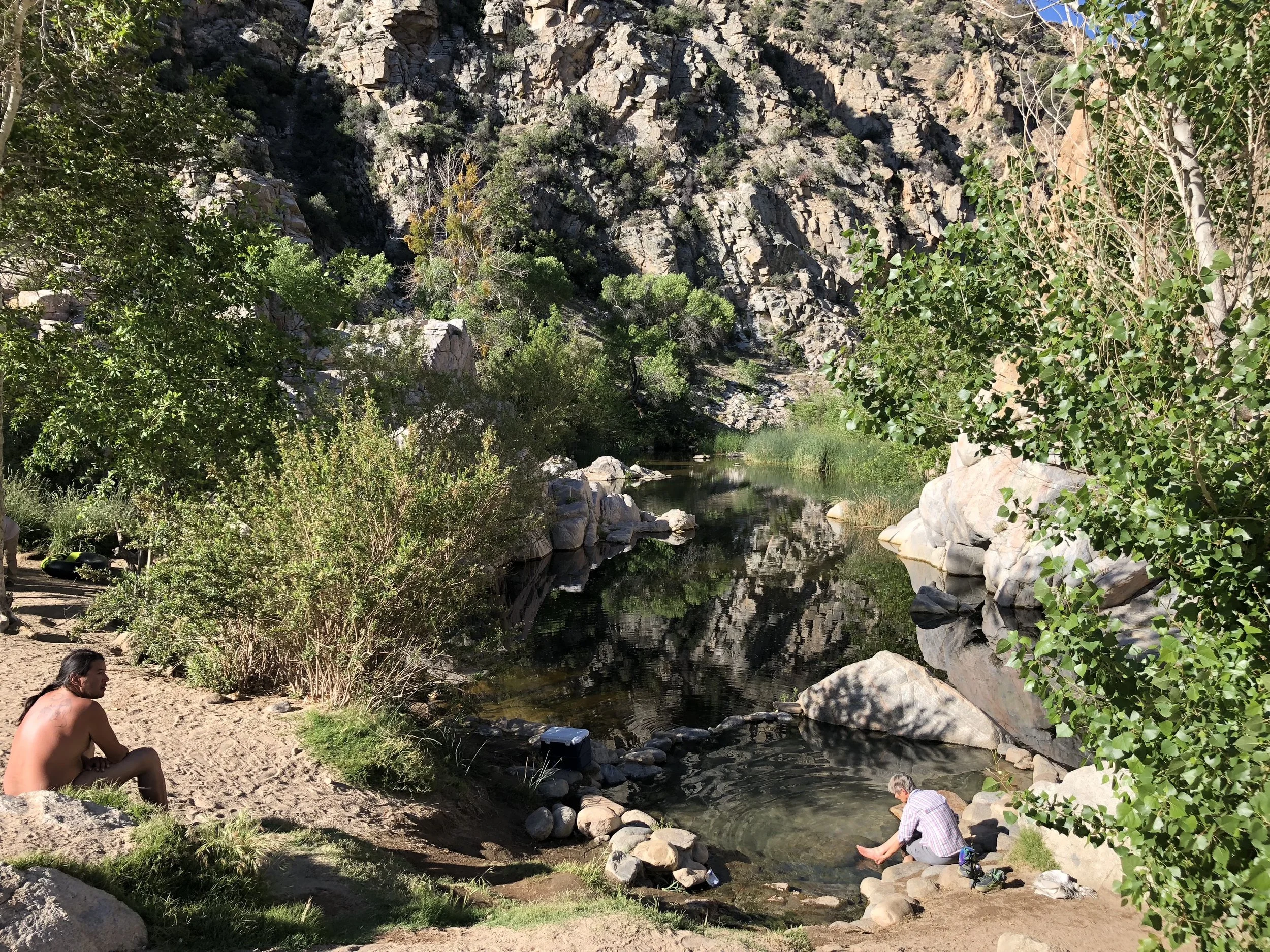 We were up and outta camp by 6:45am, another big mile day ahead of us, and we also wanted to take a short break at the hot springs. The Deep Creek Hot Springs were just 4 miles down the trail from our camp spot. They are another PCT institution and, as a “clothing optional” hot springs area, can draw an eclectic crowd.