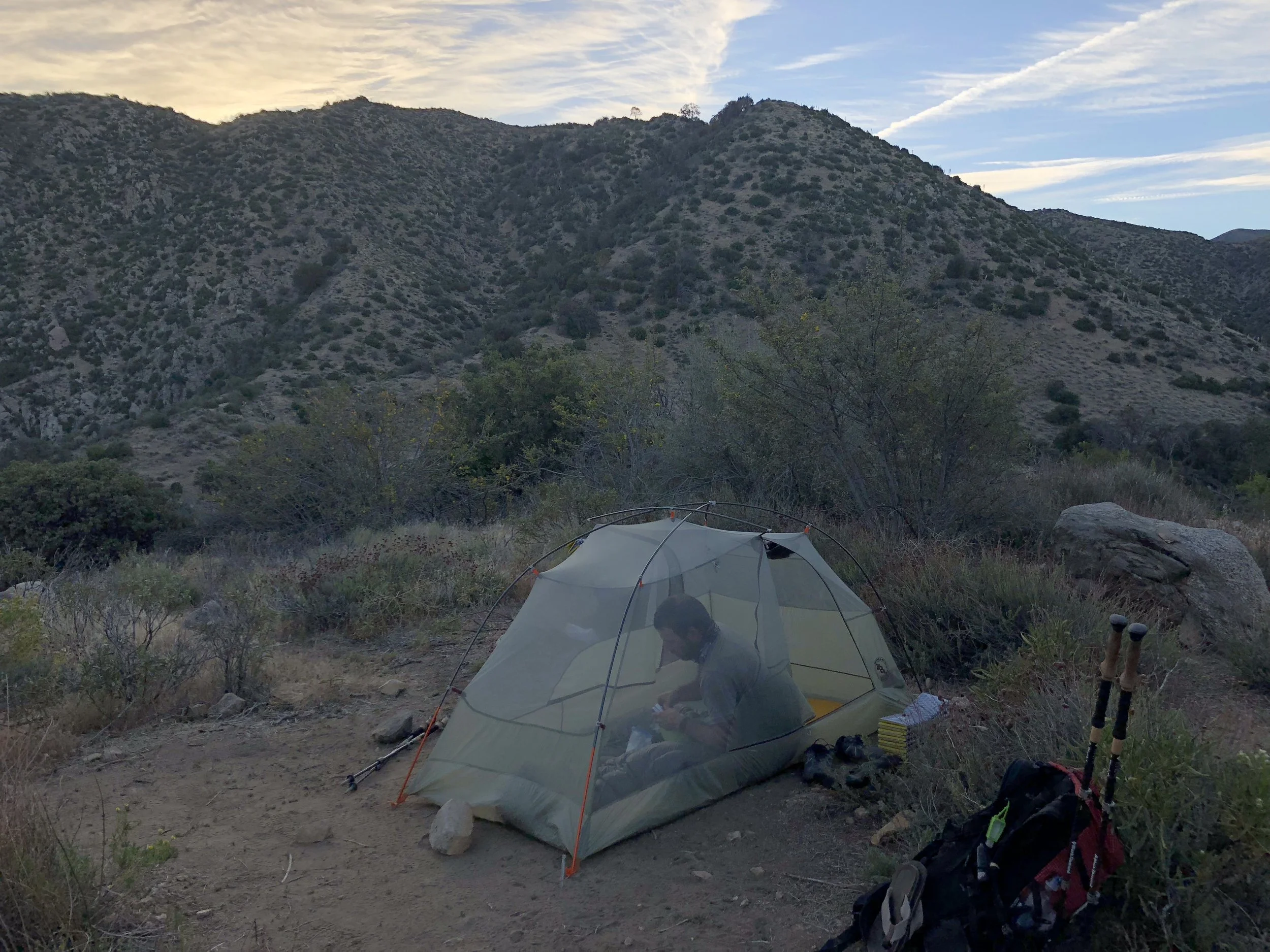 We left our lunch break area at 3:15pm for the last 10.2 miles of trail. I started out strong, even with the heat, but wilted as the day grew longer, my feet very unhappy with the mileage for the past two days. At least as the day got later, the temps grew more pleasant and there was more shade to be had. Thankfully tomorrow will be shorter.