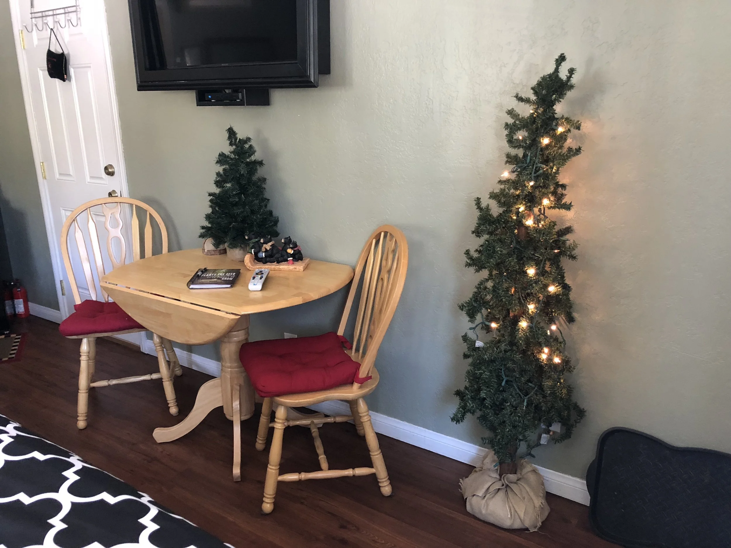 We chatted with some more hikers here and also picked up a package mailed to us by our friends Sherri and Greg. Later we were able to bust into this goody box in our hotel room, which is Christmas themed… year round, apparently.