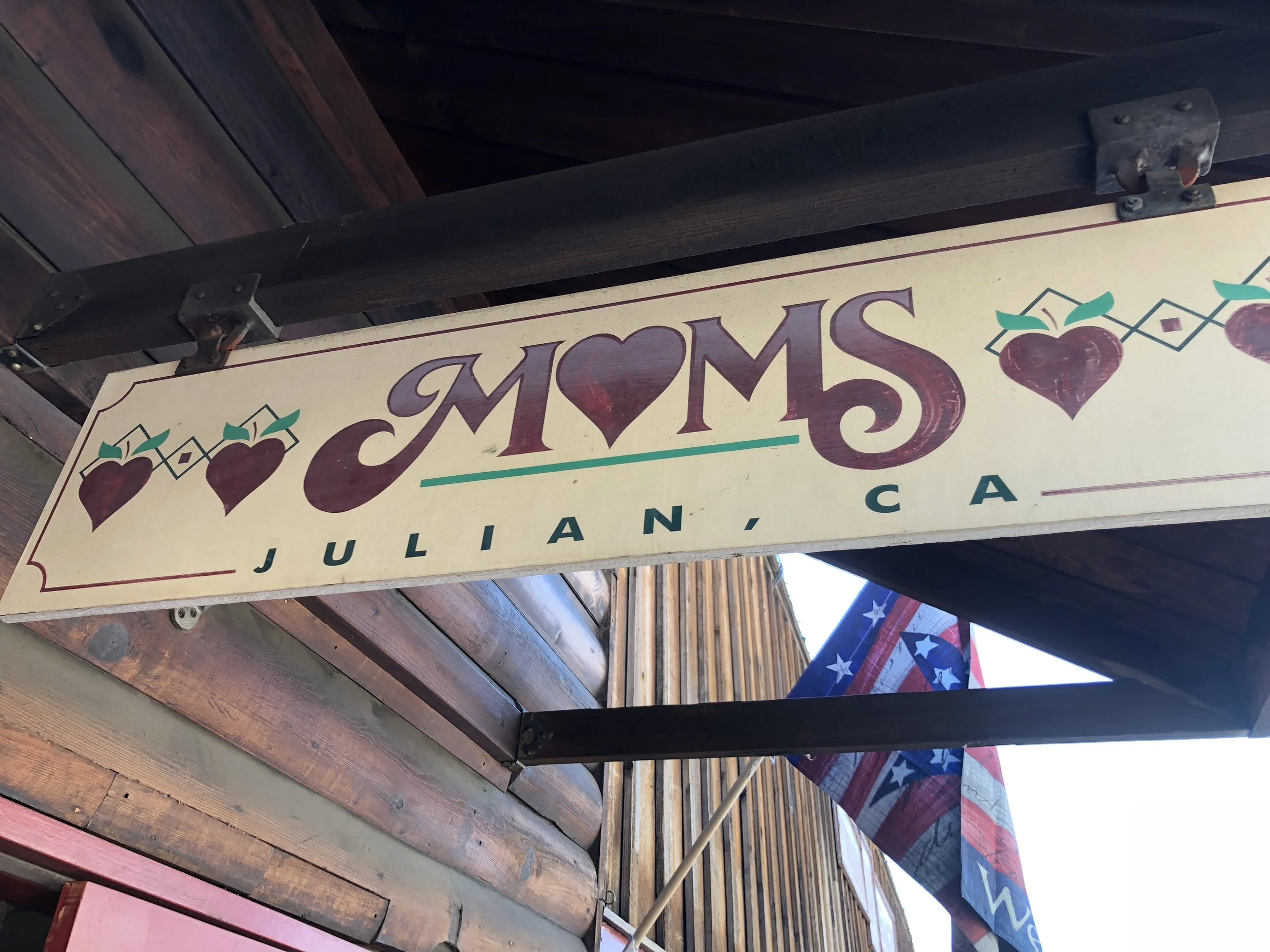 After soaking our feet, we headed down the street to Mom’s Pies. Julian is a tiny town, with most everything along a cute little Main Street about two blocks long. Mom’s Pies is an institution among PCT hikers because they give all PCT hikers a slice of their choice of hot pie with ice cream and a beverage, all free when you show your PCT permit.