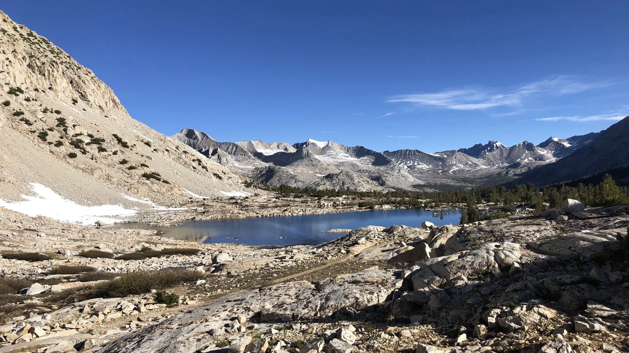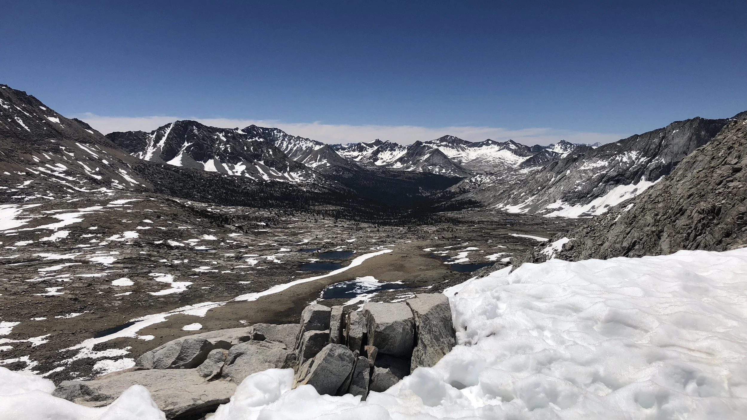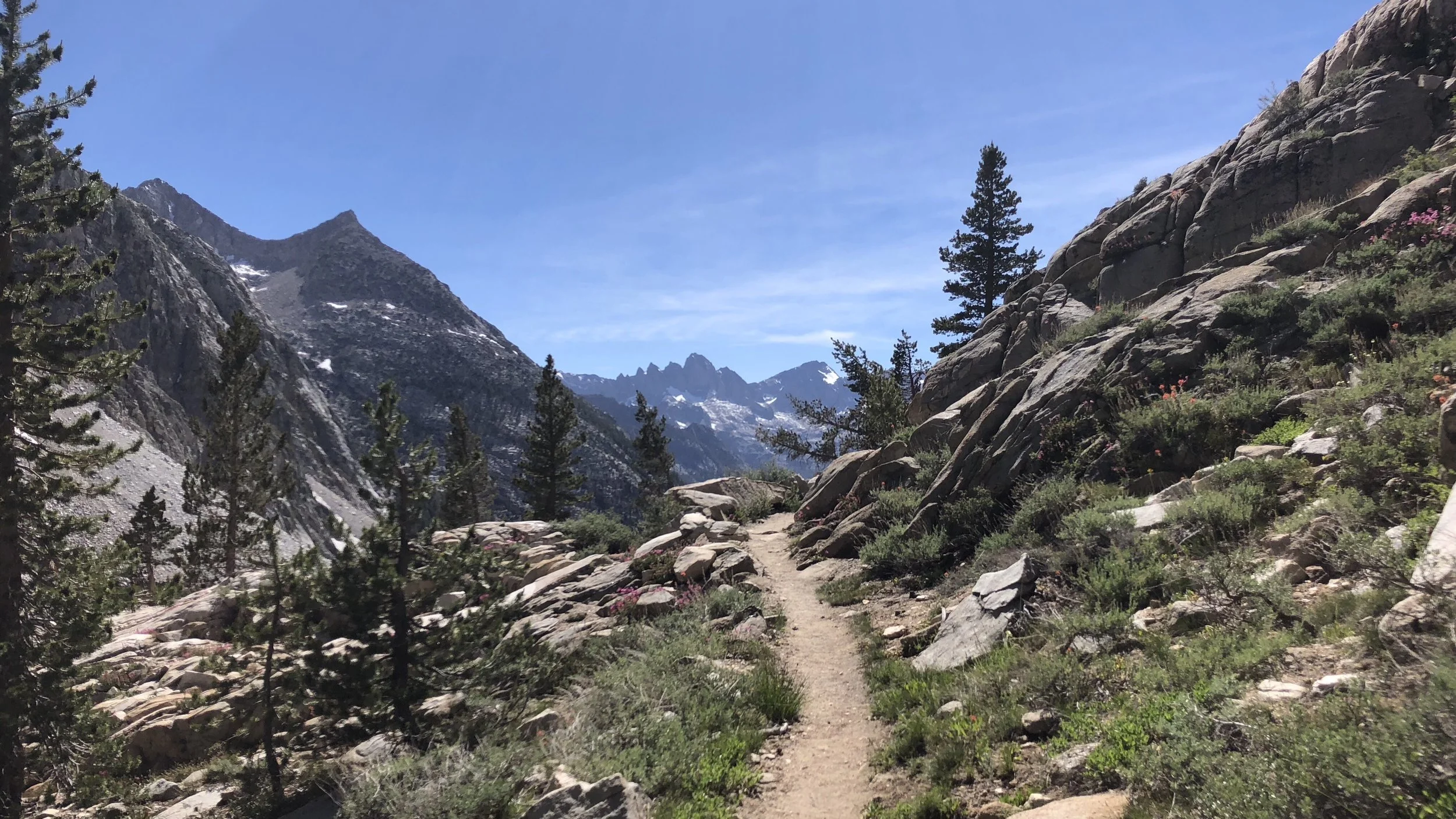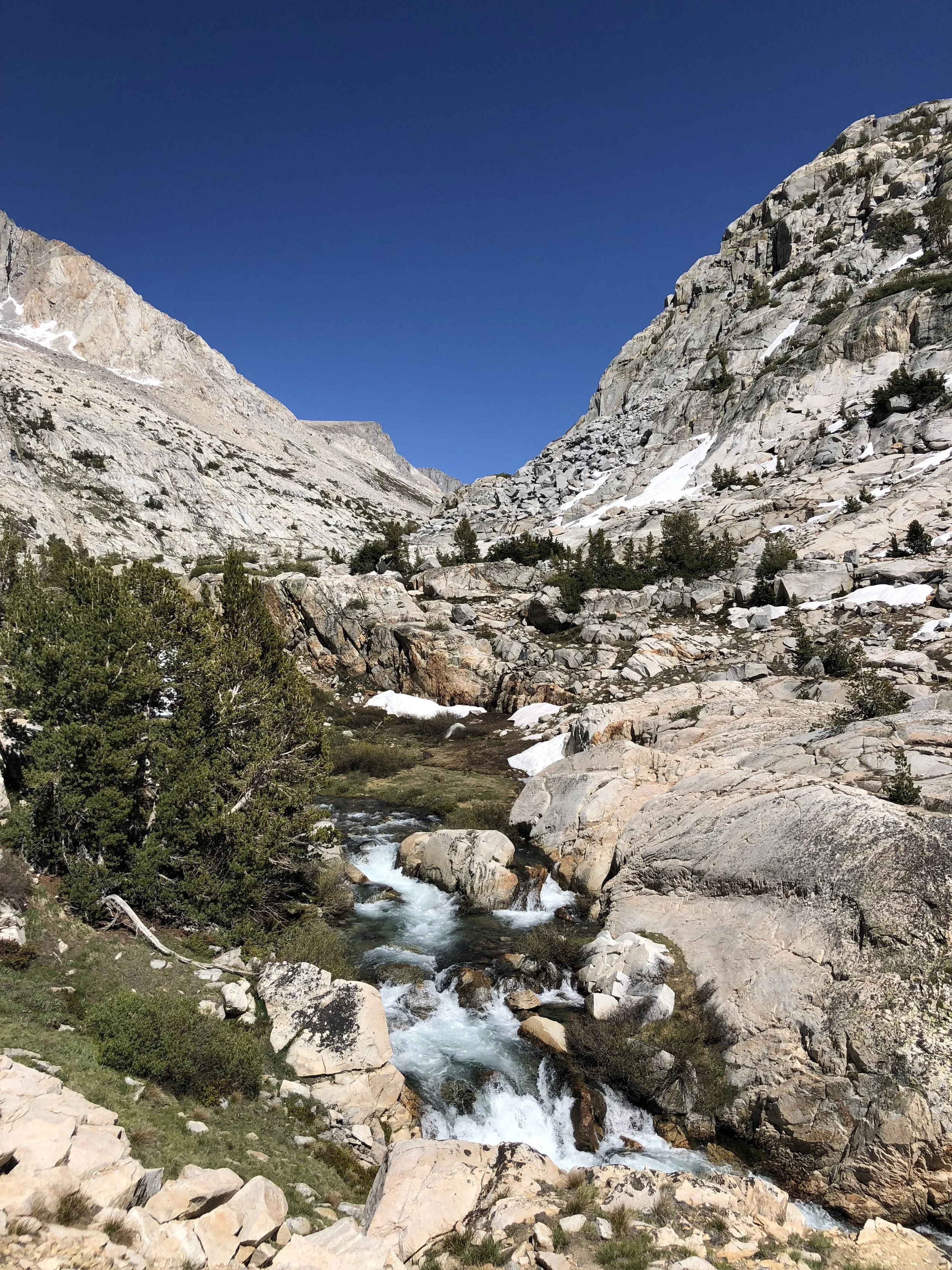 The remainder of the day was mostly a long descent of 10 miles, taking us from the 12,094 ft top of Mather Pass all the way to 8,000 ft. The descent offered stunning views of the valley, the Palisade Lakes, and the rushing Palisade Creek. Another “creek” complete with rapids and high waterfalls.