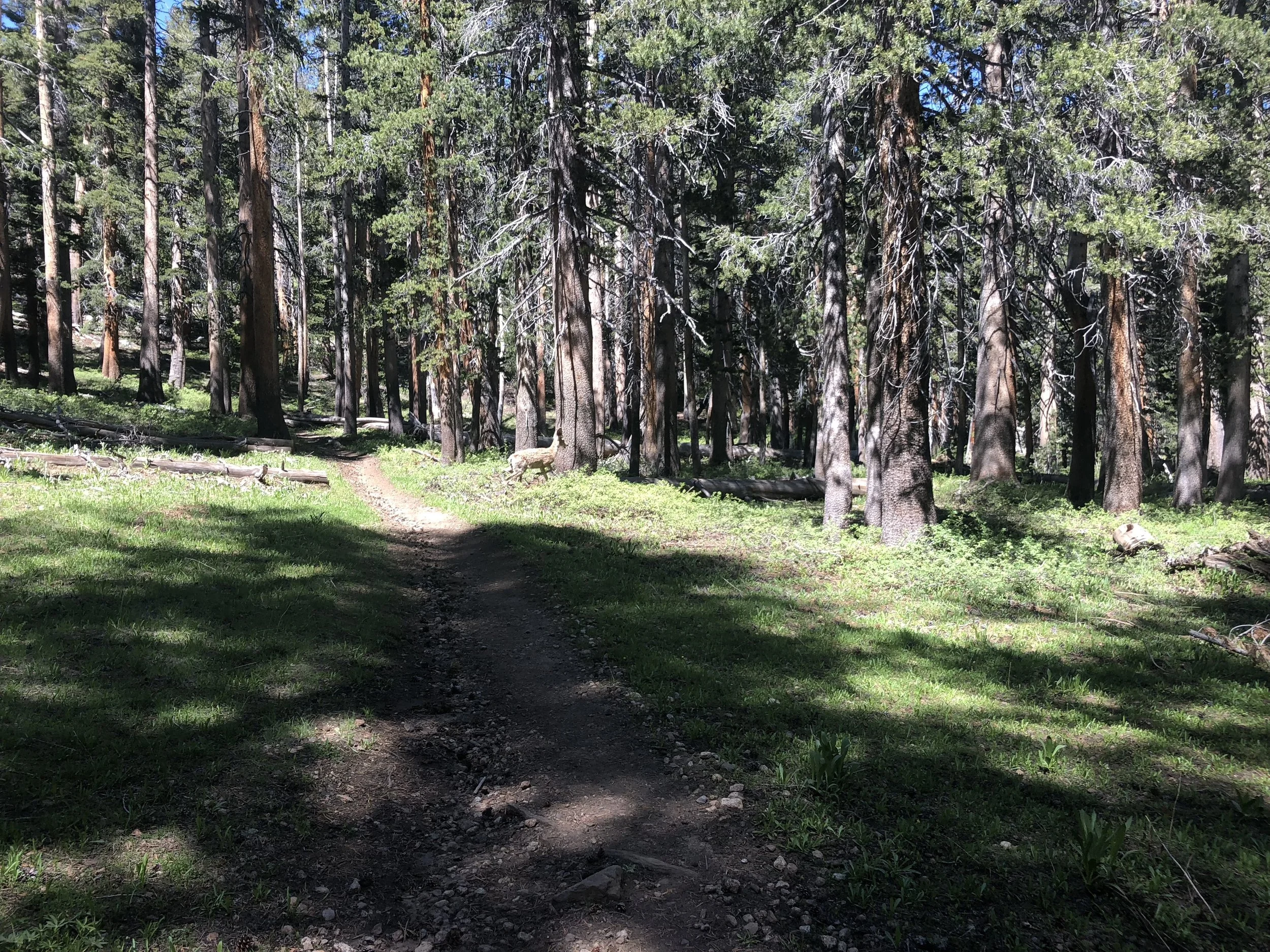Eventually the switchbacks came to a halt and the trail entered forest, a welcome change. The rest of the hike was more diverse, passing through forest, meadow, and eventually by beautiful lakes.